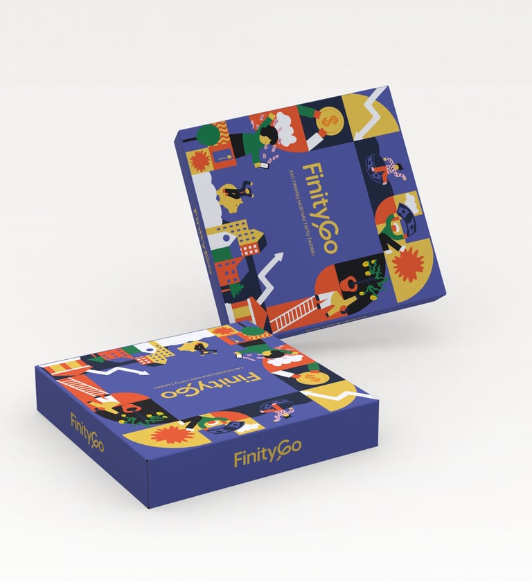 Skaitmeniniu būdų praturtintas mokomasis stalo žaidimas kuris moko apie pinigus.
